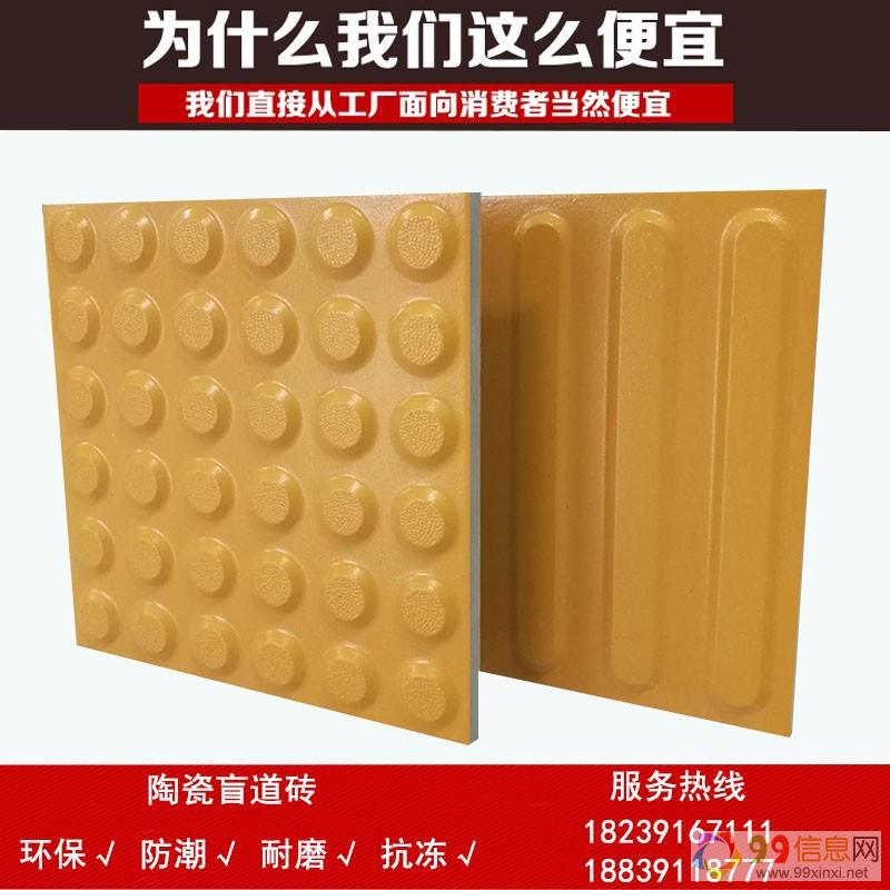 质量好的盲道砖-全瓷盲道砖有以下优点;全瓷盲道砖也被称之为陶瓷盲道砖是经过研磨在经过1500吨的真空压机进行压制成型,其次进行初步烘干与高温烧制(我们只是简单的概括流程中间只复杂几个字是说不完的)每一道工序后面都有众光的质检员把关于检验qIDs。因此陶瓷盲人石结构致密,抗压强度高,抗压强度可达100MPa以上来自www.99xinxi.net。同时具有很好的耐磨性、吸音、防滑9~9~x~i~n~x~i~n~e~t。因为起突起的表面以及专有的颜色同时也是装饰环境另外一种装饰品9~9~信~息~网。全瓷盲道砖-------陶瓷盲道砖耐久性很好,使用寿命长,甚至使用年限可达百年以上9+9+信+息+网。全瓷盲道砖销售厂家-众光联系方式;郭经理,手机/微信:18839118777,QQ:254058295
